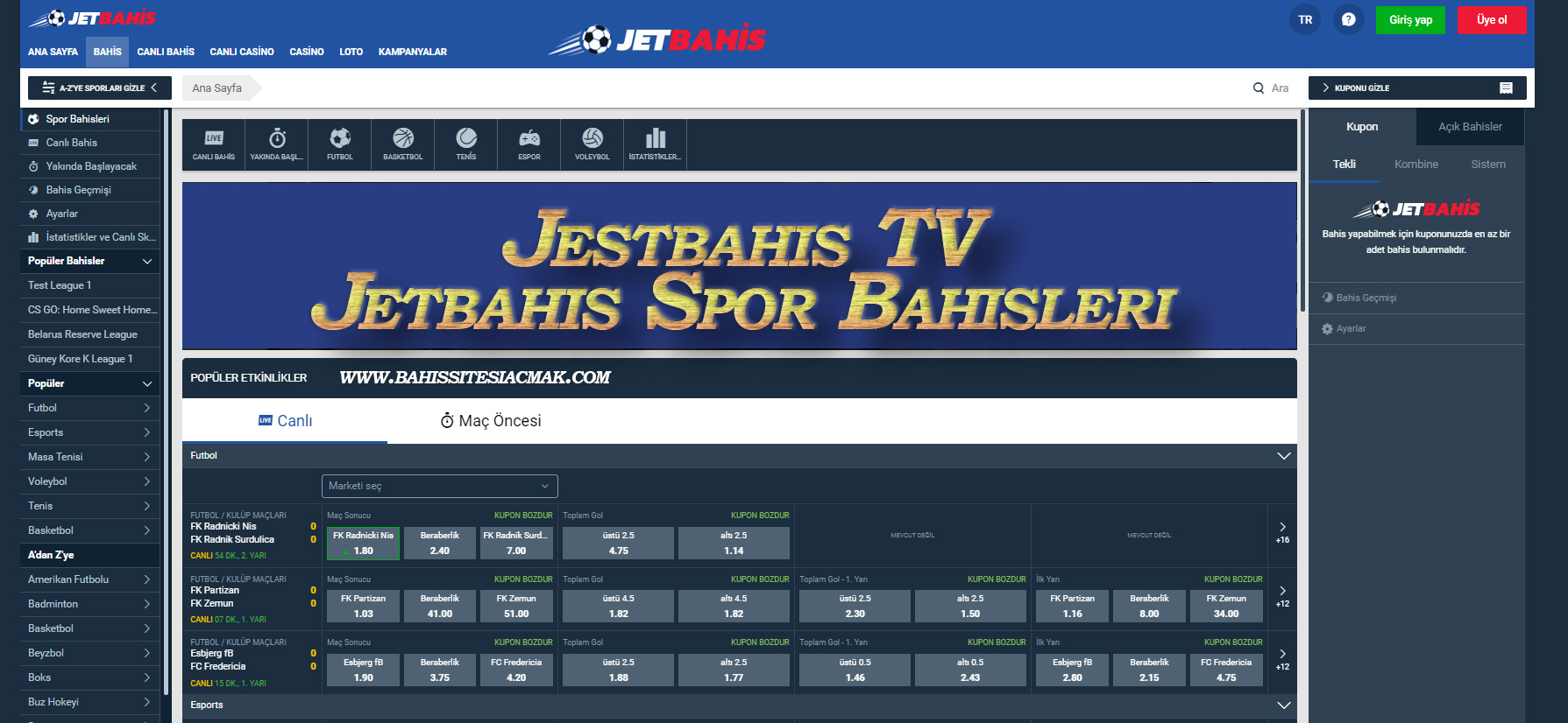 Eğer sende yüksek oranlar – geniş bahis seçenekleri ve marketleriyle kupon hazırlamak istiyorsan, Jetbahis’e kayıt ol.